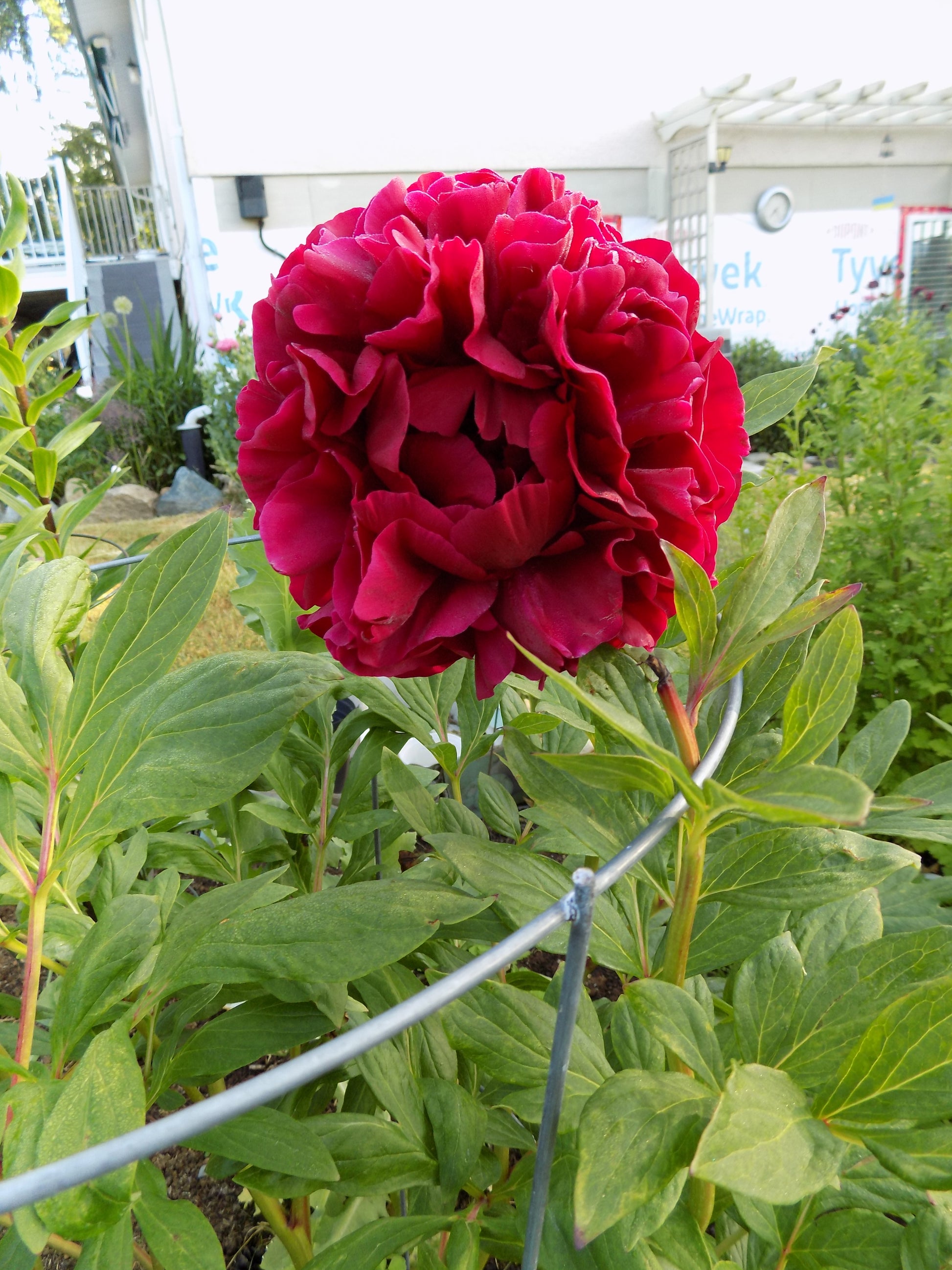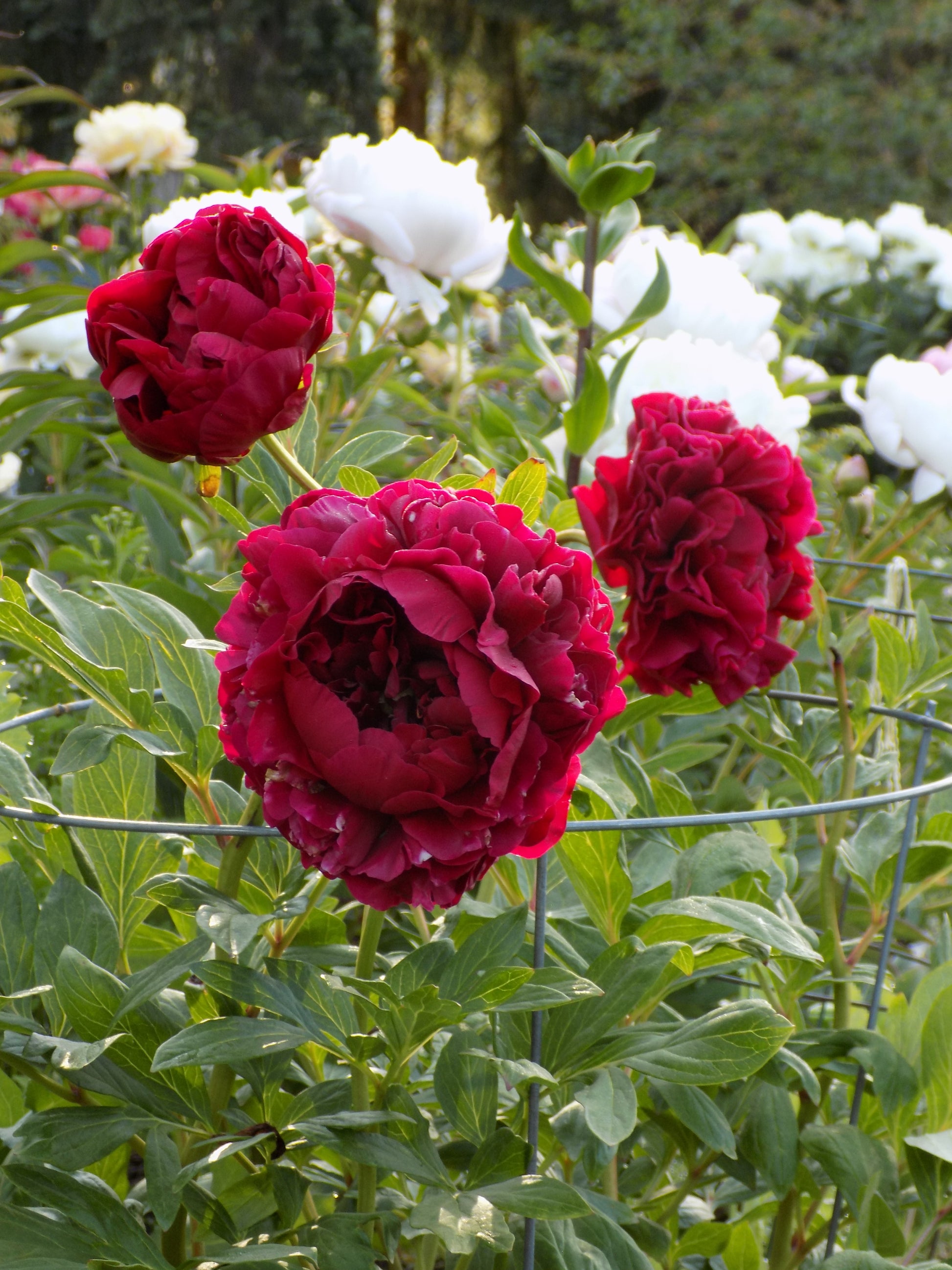 Bright red full double flowers. Very attractive about this variety is her very stylish, nearly perfect flower form. The petals are arranged in a gorgeous rosette. The very many, relatively fine leaflets give the bush a massive appearance. A very good border peony. Free flowering demands mechanical support, but the flower presentation is very much worth every effort!
