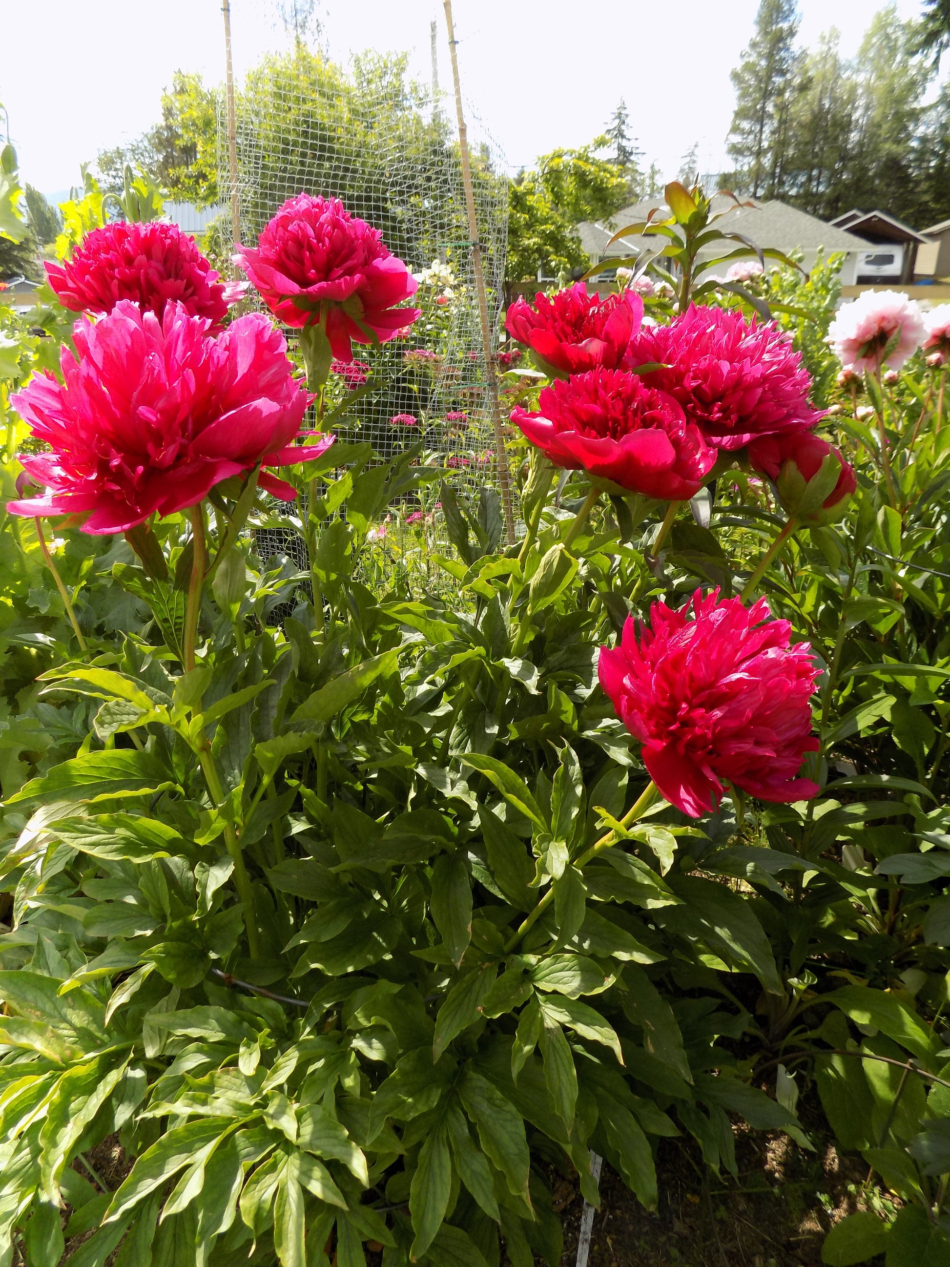 A special cultivar, the result of a cross with three different species in her parentage - a so called 'triple hybrid'. Flower form can be categorized as anemone to bomb full double. "Many Happy Returns" has a rich and bright, warm red color, sometimes highlighted by a few yellow edges on the collar petals. The colour holds very well during the maturing process of the flowers. Leaflets are slightly waved and are deeper dissected than general (lactiflora)varieties. Flowers last so long time! Strong, erect stems of medium height. Very high vigour and a grand flower production. It is so good cut flowers!