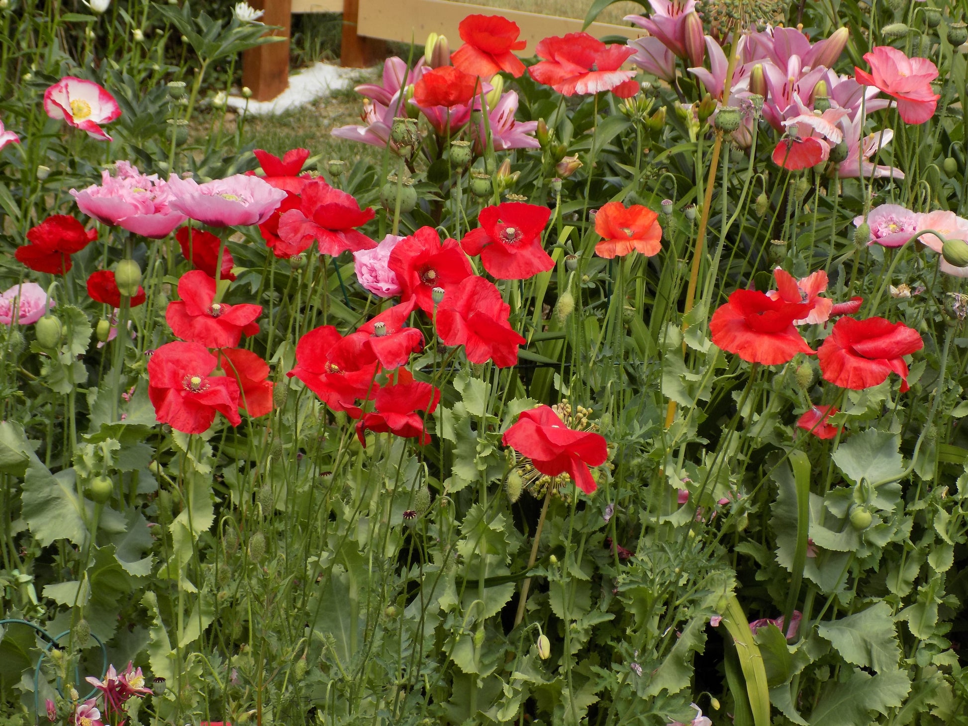 Stunning vibrant red poppies with a single flowers and so many branches! Bees and butterflies love these flowers. They are excellent choices for early Summer - Autumn colors.