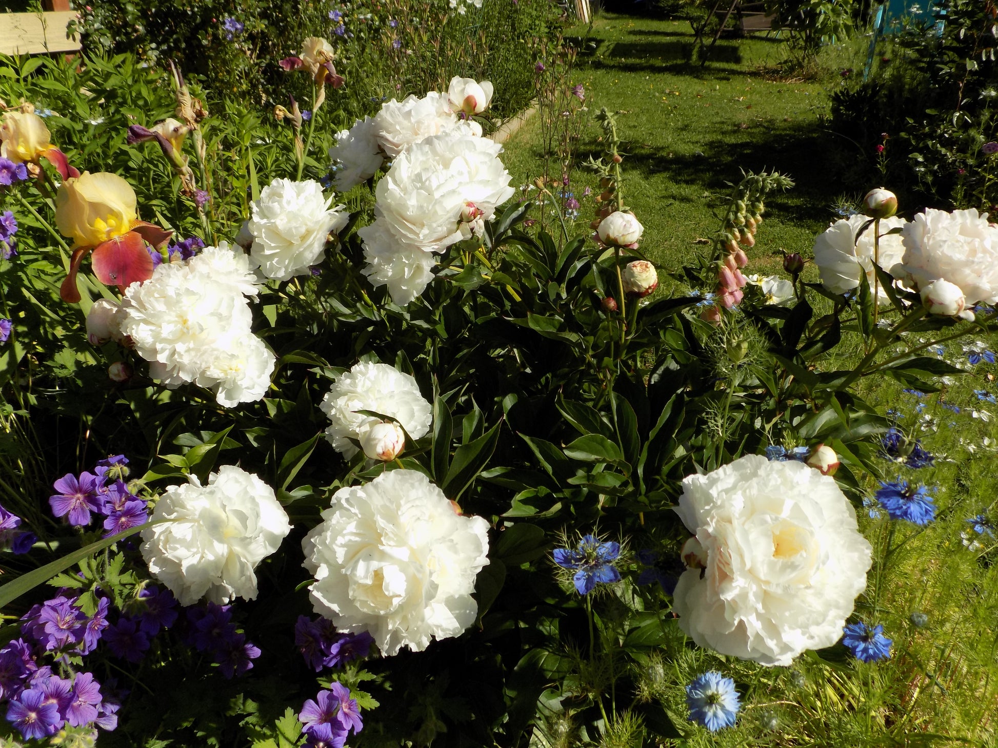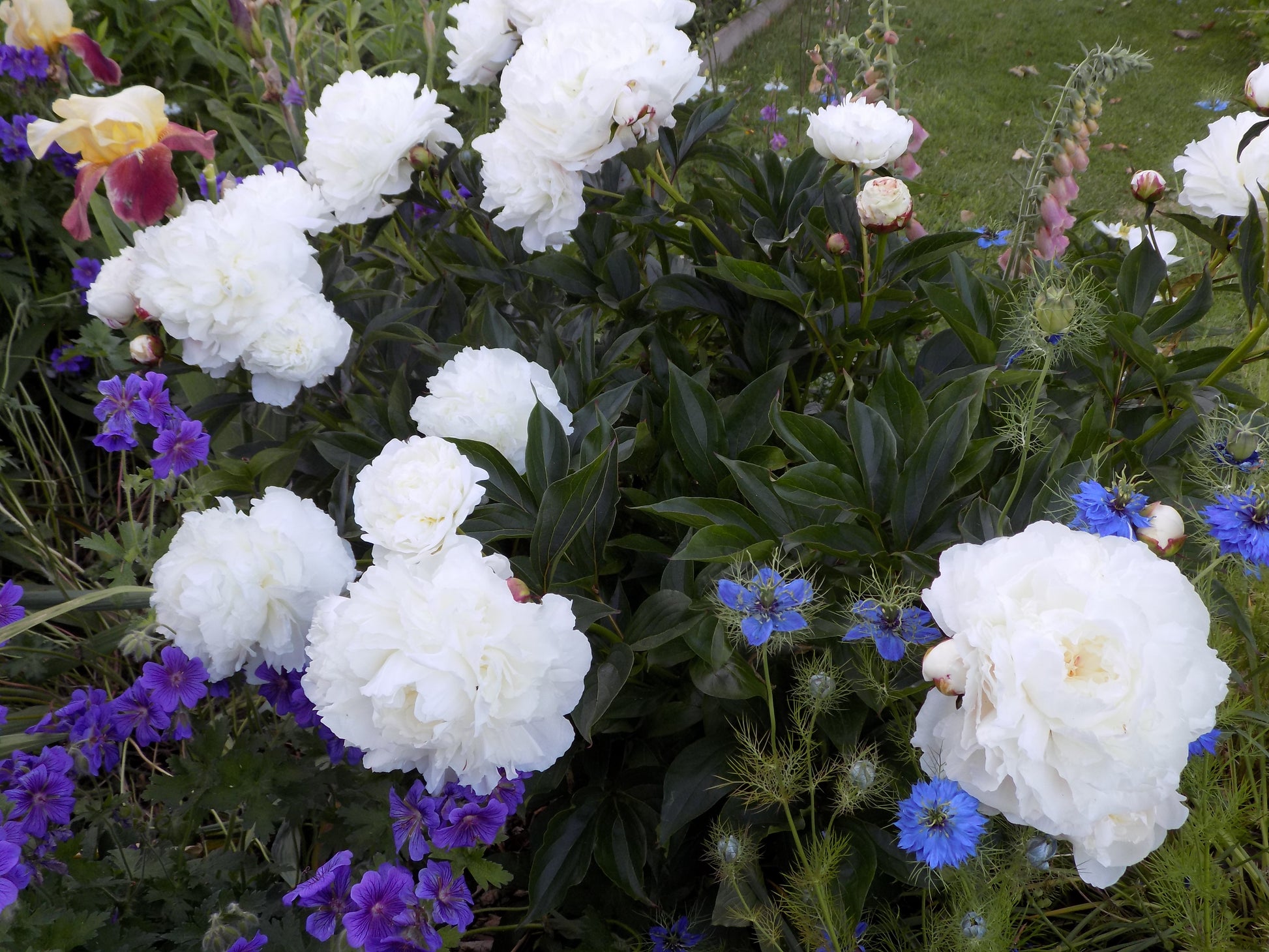 This is one of the most impressive white flowers that we have in our garden! It is a full double rose type peony. It shows soft pink color when flowers are opening. Sometimes it has a red edges on the inner petals. Flowers of perfect rose and are so big - about 20 cm in width. Bush is strong with a sturdy stems that can holds these big flowers. It is one of the top 5 peony varieties for the cut flower industry.